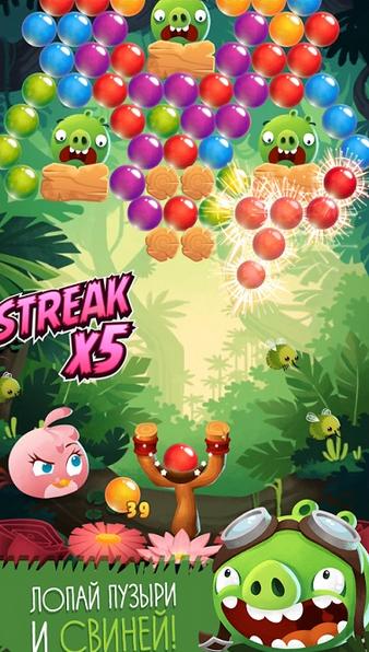 В какой-то степени новинка Angry Birds на андроид является головоломкой. Нужно научиться правильно совмещать шарики (компонуя три и больше шариков). Если соединить несколько цветов вместе, какая-то часть «свинской» защиты точно обрушится. Упало несколько свинок? Значит, победа почти в ваших руках!