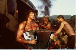 Фотоляпом здесь является аккордеон в руках Сильвестра Сталонэ.