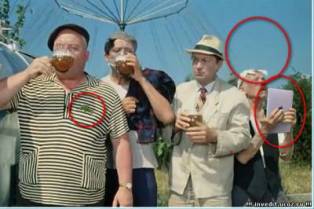 Мы нашли на нем три фотоляпа: Дарт Вейдер на фото, бутылка под стулом, и четвертый сверху слева человек.