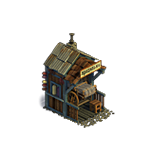 В этой постройке вы можете производить следующие материалы – Проволока, Цепи, Огонь, Пила, Железо, Гвозди. Вам нужно нанимать рабочих, что бы кузница могла работать.