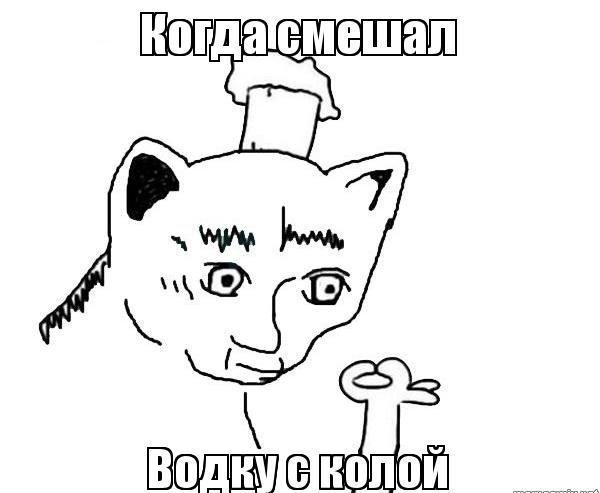 Картинка с котом-поваром, который называет шедевром простые блюда, не требующие практически никаких знаний для их приготовления. Хотя водка с колой заманчивое предложение, все же лучше водку с пивом, иначе деньги на ветер.![]()
