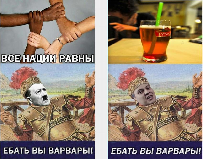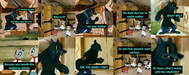 Данный мем очень порадовал публику тем, что все высказывания в подобного рода мемасах писались на английском, а точнее на ломаном английском языке. В большинстве случаев в качестве картинки использовались скриншоты из мультфильмов, а половина слов были русскими, но написанными на иностранном языке.![]()