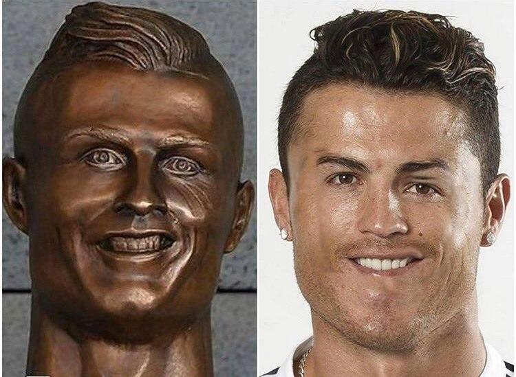 На родине Криштиану футболисту местные власти установили памятник в виде бюста, который получился очень смешным из-за криворукого исполнения. Пользователи соцсетей и СМИ активно понесли новость, что позволило родиться очередному мему.![]()