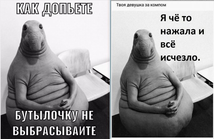Ждун до сих пор является актуальным мемасом, поскольку это уже достояние общественности. Картинка с морским слоном очень точно описывает человека, который постоянно чего-то ждет. Например, когда вы устроились на работу и спрашиваете в первый день, что нужно делать. Родился мем благодаря скульптуре Homunculus Loxodontus художницы Маргрит ван Брифорт. Честно говоря, это один из лучших мемов нынешнего года.![]()