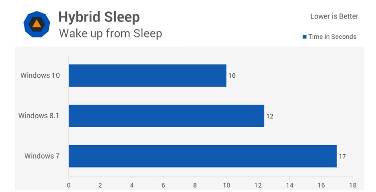 Гибридный спящий режим - что-то среднее между сном и гибернацией. Как видим, Windows 10 снова существенно опережает Windows 7.