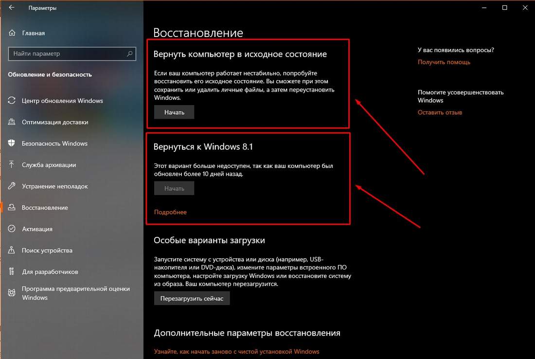 Windows 10 сравнение с Windows 7 - сброс до заводского состояния