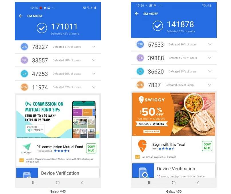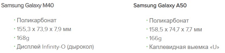Galaxy M40 сравнение с Galaxy A50 - аппаратные средства