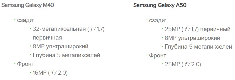 Галакси М40 сравнение с Галакси А50 - камеры