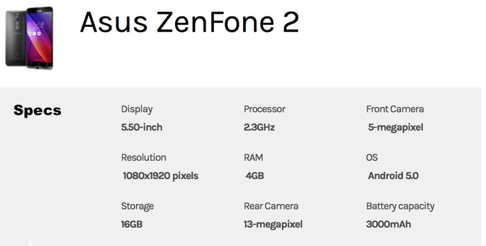 Новый смартфон оснащен камерой PixelMaster с разрешением 13 мп со вспышкой Real Tone Flash, которая позволяет более точно передавать оттенки кожи даже при недостатке освещения. Передняя камера обладает стандартным разрешением 5 мп. Телефон работает на ОС Android 5.0 Lollipop, на нее устанавливается оболочка ZenUI, которая учит смартфон работать с многооконным режимом, имеет хороший антивирус и постоянно следит за обновлениями. Доступный объем встроенной памяти новых гаджетов варьируется в диапазоне от 16 до 64 ГБ. Разумеется, ZenFone 2 поддерживает карты памяти microSD. Купить смартфоны с 4 ГБ ОЗУ можно будет уже в марте 2015 года. Цена ZenFone 2 топовой модификации пока не сообщается.