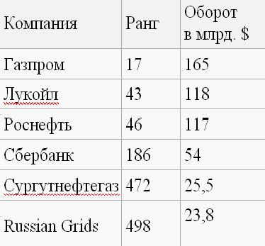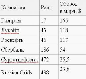 Российский газовый монополист «Gazprom» находится на 17 строчке в списке Fortune Global 500. Кстати, год назад «Газпром» располагался в Fortune 15 позицию. Чистая прибыль газовой компании составила 35,7 млрд.долларов США. Крупнейший производитель природного газа потерял свои позиции в виду трений между Россией и Украиной. В то же время Газпром рассчитывает на снижение своей зависимости от Европы. Это будет возможным после подписания сделки с Китаем на 400 млрд. долларов.