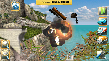 Суть игры Bridge Constructor на андроид очень проста. Вам придется заниматься постройкой мостов, которые будут проходить через большие овраги или реки. Игроку дается определенное количество денег на каждом отдельном уровне. На них вы сможете покупать требующиеся материалы.