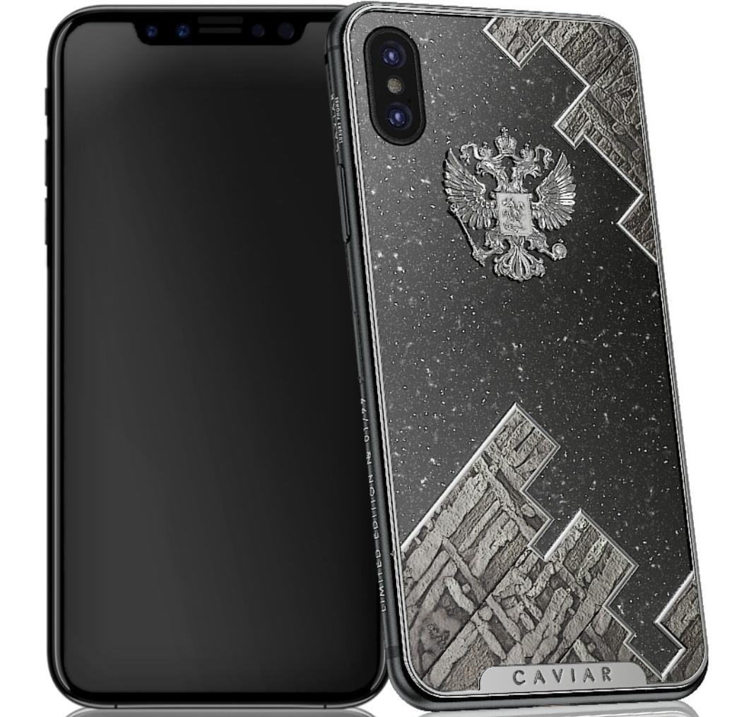 Вообразите себе - метеоритный камень Сеймчан, украшающий iPhone X от Caviar. Он впервые был обнаружен в 1967 году, в Магадане. Кроме того, изайн смартфона посвящен великим достижениям России в космической сфере. Материалы: белое золото (герб), элементы метеорита. Цена от 244 000 рублей.![]()