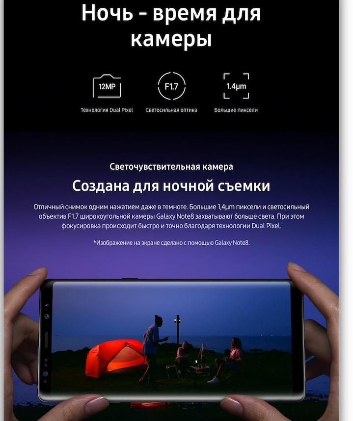 По всем остальным параметрам экран Галакси Ноте 8 ничем не отличается от Galaxy S8 и S8+. Все такой же яркий, насыщенный, с высокой контрастностью и детализацией.
