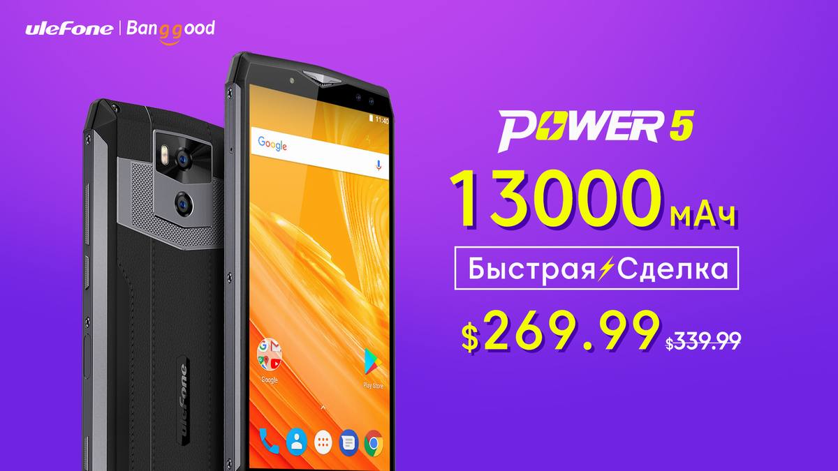 Нам постоянно мало зарядки, мало энергии, поэтому чаще всего люди покупают смартфоны с большой аккумуляторной батареей или идут на ухищрения, приобретая повербанки. А что если мы расскажем вам о телефоне-повербанке, этаком универсальном решении, которое способно работать и как обычный смартфон, и как внешняя батарея. Нет, это не какое-то чудо инженерии, просто компания Ulefone решила создать смартфон с самой большой батареей в мире, емкостью 13000 мАч. Китайский бренд даже подал заявку в Книгу Рекордов Гиннеса, дабы зафиксировать действительно необычный девайс. Мощная батарея, не стыдное железо и производительность, двойная камера от Sony, большой широкоформатный сочный дисплей - что еще можно желать от весьма компактного,  мобильного гаджета. Но это не все, поскольку компания Ulefone решила сделать подарок всем покупателям, предложив существенную скидку на свой девайс. Хотите получить автономность на уровне 7 дней при активном использовании смартфона? Тогда поспешите оформить предварительный заказ аппарата на онлайн-площадке Banggood, где Ulefone Power 5 продается всего 270 долларов (обычная цена равняется 340 долларам).