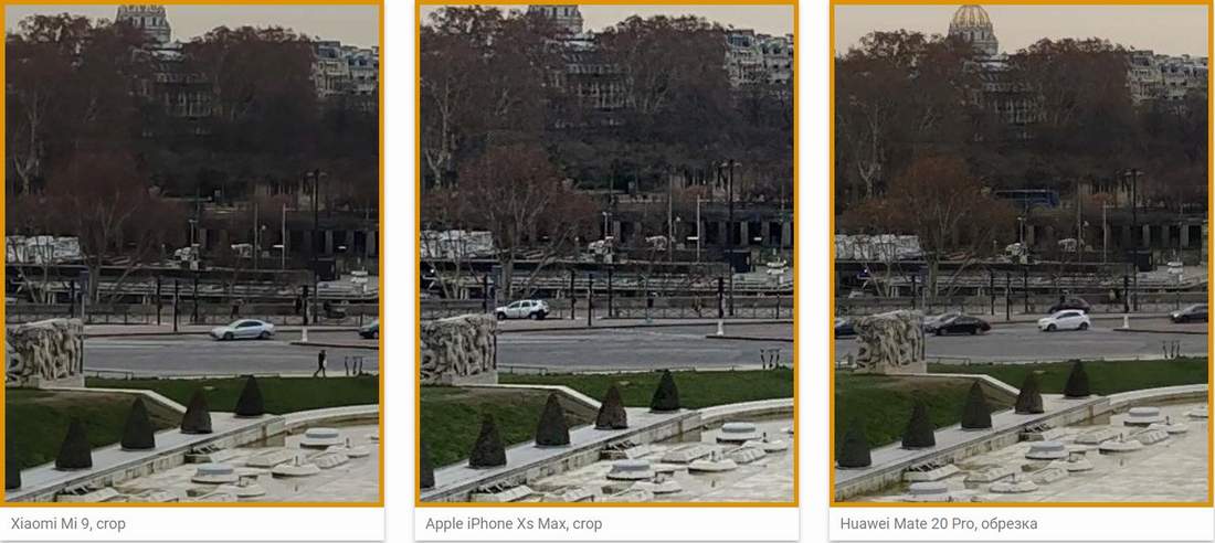 В наружных фото Xiaomi Mi 9 почти не шумит и отлично справляется со своей задачей, хотя у Huawei Mate 20 Pro небо выглядит более читсым, а вот у iPhone XS Max голубое небо уже не такое чистое.