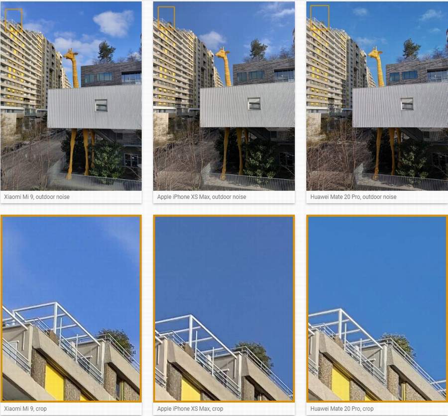 Обработка изображений в Сяоми Ми9 находит хороший компромисс между отображением деталей и шумоподавлением. Однако у смартфона не лучший результат из всех смартфонов и его оценка близка к тому, что демонстрирует Apple iPhone XS Max (Apple захватывает больше текстуры, но также сильнее шумит). Лидером в этом вопросе является Huawei Mate 20 Pro, показывая лучшую детализацию при низком шуме. В наружных сравнительных снимках ниже вы можете видеть, что и iPhone XS Max, и Mate 20 Pro обладают лучшей детализацией, чем Xiaomi Mi 9, особенно в областях с низкой контрастностью изображений, которые выглядят довольно мягко на Xiaomi.