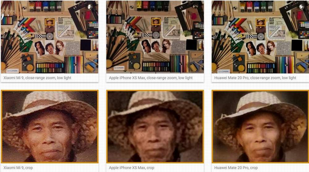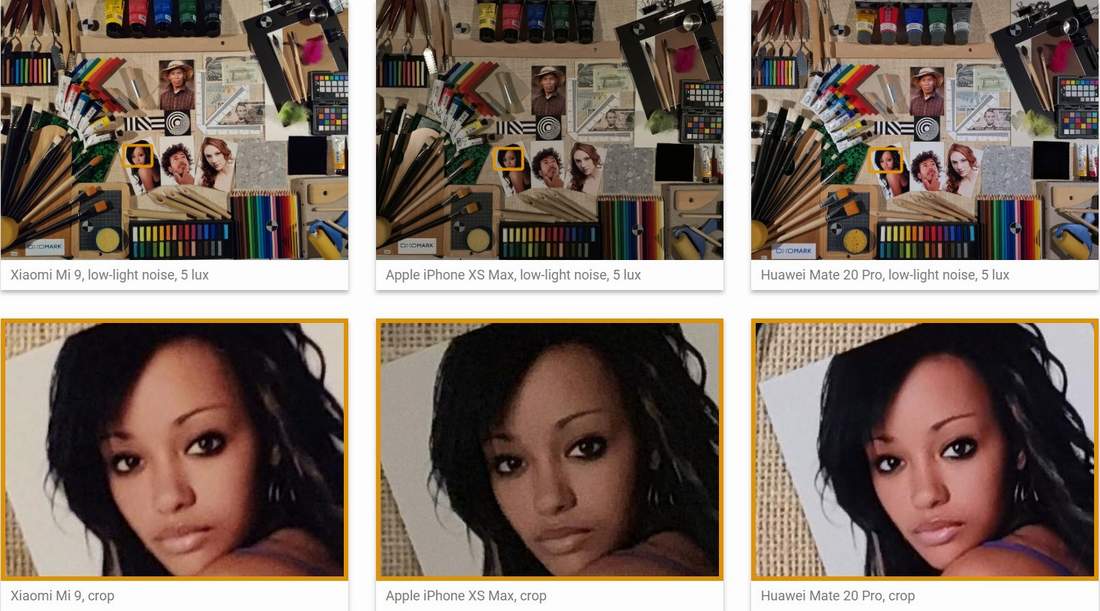 При типичном освещении в помещении и в условиях низкой освещенности различия менее выражены - так Xiaomi Mi 9 ближе к конкурентам. При освещении в 20 люкс шум более заметен на Xiaomi Mi 9, чем на Mate 20 Pro, но изображение на Xiaomi чище, чем изображение на iPhone XS Max.