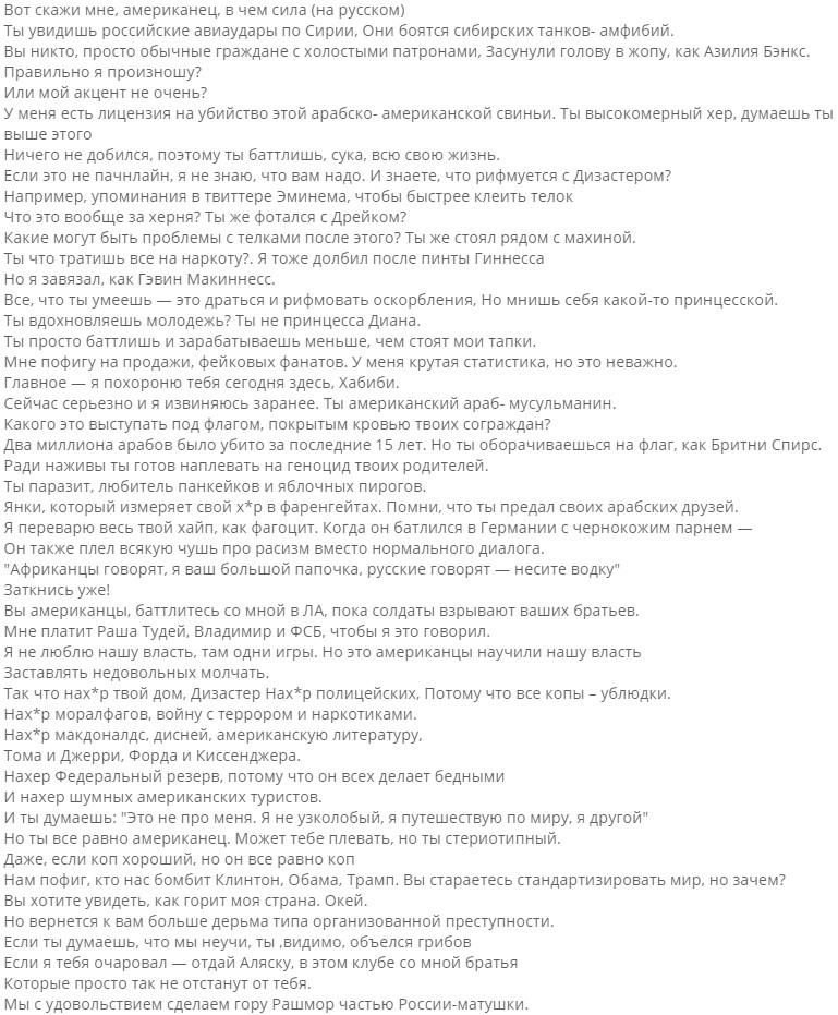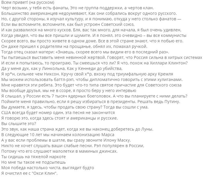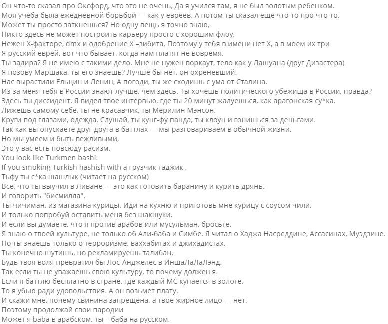 - сложность написания текста на иностранном языке, если учесть, что ранее Oxxxymiron ничего подобного никогда не делал.