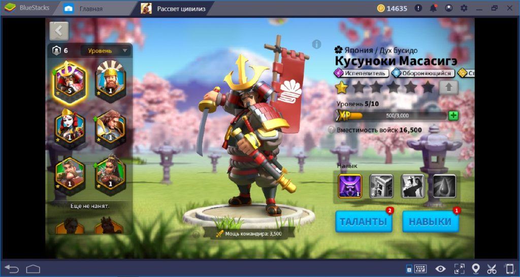 Лучшие командиры в игре Рассвет цивилизации – исторические фигуры. Если переходить на личности, то к ним в игре относятся сэр Ланселот, Боудикка, Фридрих I, Карл Мартелл, Ганнибал Барка, Сунь Цзы и Жанна д'Арк. У каждого командира в игре есть уникальное дерево прокачки, которое позволяют улучшать героя от уровня к уроню. Прокачивать героев вы можете с помощью очков талантов. Улучшения могут быть направлены на защиту, атаку или скорость перемещения войск. Кроме активных умений у командиров в Рассвете Цивилизаций могут быть и пассивные умения. Чтобы поднять их, вам нужно открывать особые скульптуры, которые выпадают из сундуков. Лучший командир в Rise of Civilizations для атак – Сципион Африканский. Лучший командир для защиты – Сунь Цзы. ![]()