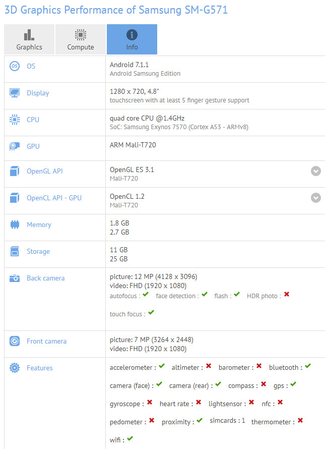 Stevsky.ru Техноновости Samsung Galaxy J5 Prime 2017 (Галакси Джей 5 Прайм) - результаты теста в бенчмарке GFXBench показали параметры хуже, чем у Galaxy J5 2017