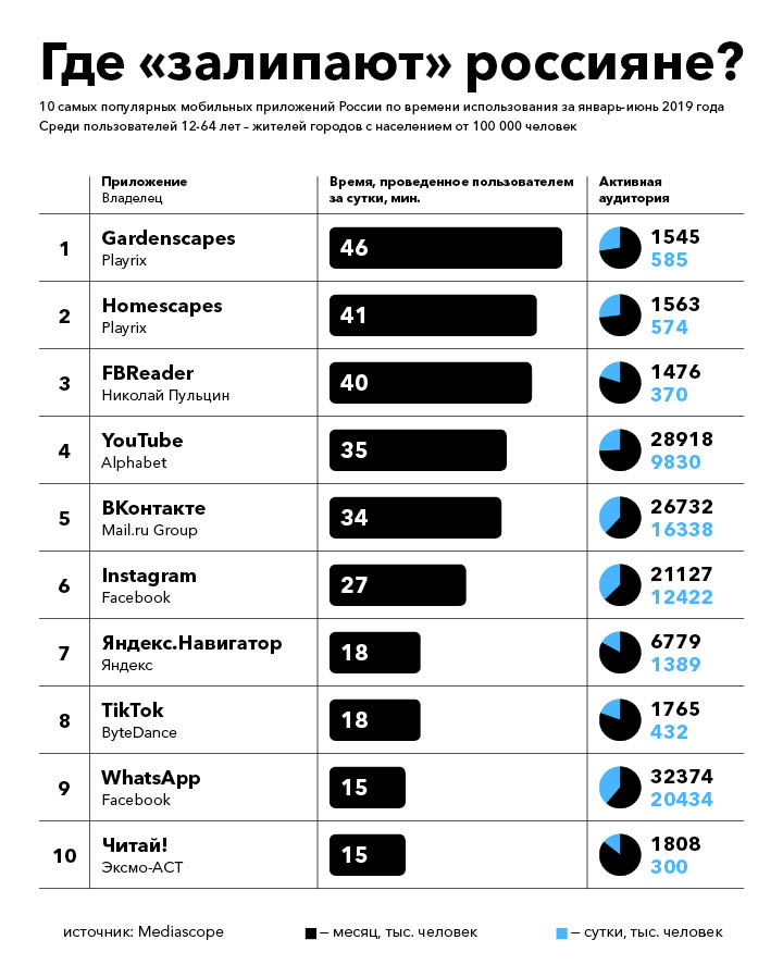 Вот так, собственно, выглядит список из 10 самых популярных приложений в России за первых пол года 2019 года.